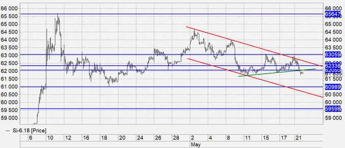 Продажа: нет. Кто в позиции, перенесите стоп на 62600. Цель: 59600.