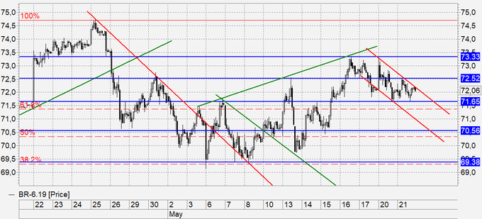 Нефть: пока у быков ничего не получается. Отчет API показал вчера рост запасов в США на 2.4 млн. баррелей. Это нейтральное значение. В отсутствии новостей рынку будет сегодня тяжело продолжить рост. Продавцы создали серьезный оплот на 72.50 и пока цены не поднимутся выше данного уровня о продолжении роста говорить не приходится.