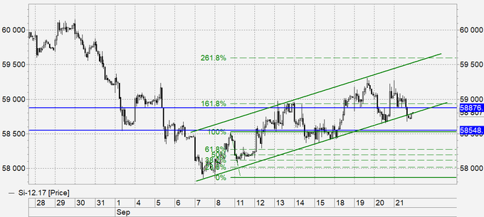 Покупка: нет. Кто в позиции переносит стоп на 57.80. Цель: 58.60. Существует угроза сброса к 58550 и ниже.