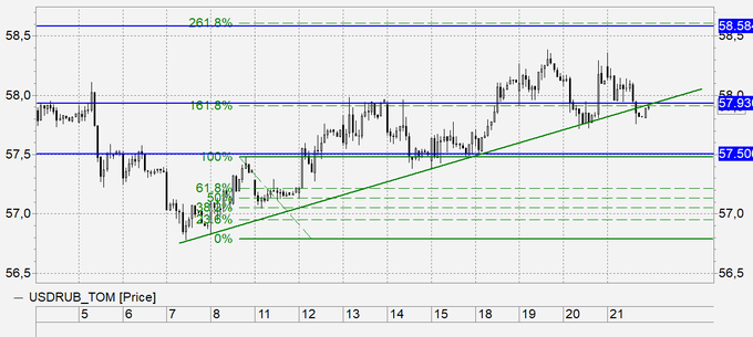 Рубль пока ведет себя намного лучше, чем ожидалось и никак не доберется до 58.60. Более того, если сегодня не последует возврата выше 58.00, то возникнут подозрения в способности доллара «противостоять натиску российской валюты».
