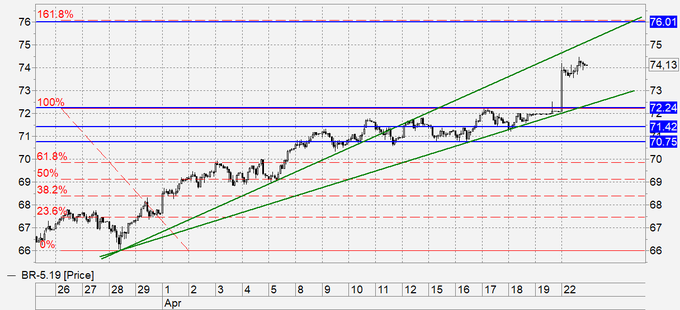 Наиболее вероятно: откат к 72.60 и продолжение роста.