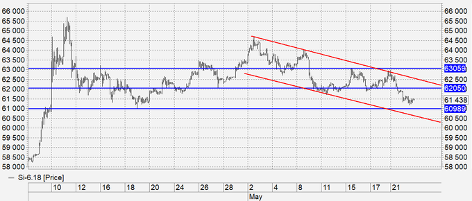 Продажа: нет. Кто в позиции, перенесите стоп на 62200. Цель: 59600.
