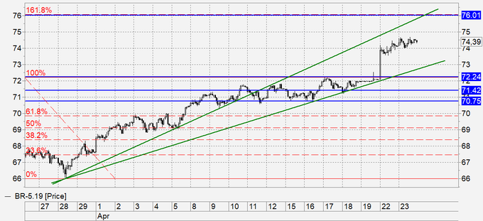 Наиболее вероятно: рост к 76.00.