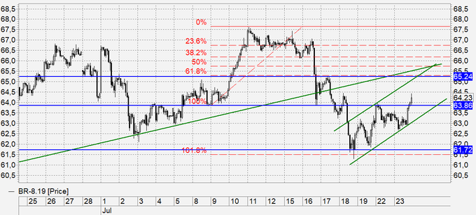 Нефть: API выдал агрессивные цифры по запасам нефти в США. Минус 10.961 это весьма сильное снижение. Хотя, если посмотреть статистику, то можно увидеть, что конец июля отличается этим. Продолжаем ждать роста к 65.00. Там находится наиболее привлекательный уровень для продаж. Говорить о том, что цены с текущих уровней отправятся вверх пока не будем. Сегодня вечером отчитается EIA, но вряд ли цены отреагируют слишком радикально на снижение запасов в Штатах.