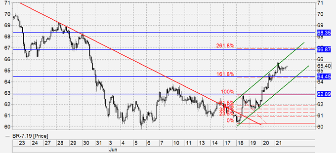Наиболее вероятно: откат к 64.55, далее рост.