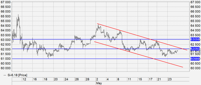 Продажа: нет. Кто в позиции, держите стоп на 62150. Цель: 59600.