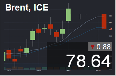 Цена в долларах за баррель. Для пересчета в доллары за тонну нефти марки Brent, необходимо цену умножить на 7,59.