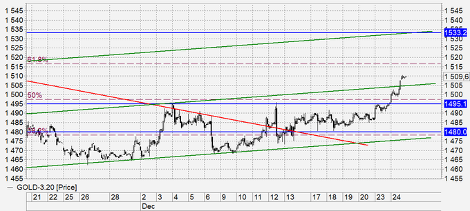 Золото: «вряд ли накануне католического Рождества мы увидим резкие движения». Вчерашнее предположение оказалось неверным. Мы пробили 1510. Что ж, это сильная заявка от быков на то, чтобы продолжить рост в конце этого и начале следующего года. Уровень 1570 теперь не видится каким-то далеким. Держим лонги.