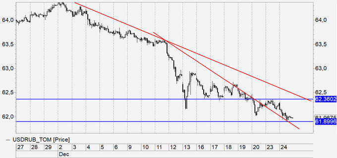 Рубль: кто бы мог подумать. Мы продолжаем движение к 60.70 не реагируя на провокации со стороны США. Это плюс рублю, так как есть предпосылки, что мы дотронемся до нижней границы очень долгосрочного растущего канала как раз в районе 60.70. И вот там будет настоящая рубка за право остаться в канале или выйти из него вниз. Тогда цель будет в районе 55.00. Нефть поддерживает рубль.