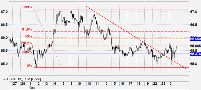 Рубль: товарищ Болтон, эх, товарищ Болтон. Ну, вы и болтун. Вчера в 14.00 наблюдали реакцию, что мол «командир назначил меня любимой женой». Много народу поубивало, это явно. Нефть припадала, доллар подрастал, и тут «хрясь» и минус 50 копеек за час. Потом восстановились, но осадочек остался. А меж тем, засланный господин лишь сообщил, что решение по санкциям принято, а введут его с лагом через 6 месяцев, то есть в конце ноября, если поведение России не изменится. Возможно, оно изменилось, далее лишь теория, реальных данных нет: американская инспекция по итогам переговоров в Москве все-таки будет допущена на любые объекты. Химическое оружие у нас будут искать. Обыск. Как у террористов. Да, на таком фоне можем вернуться к 64.00 и далее к 60.00. Таким образом, если сегодня на фоне падающей нефти рубль будет расти, то это однозначный сигнал к тому, что Россия пошла на уступки США. По технике, сегодня есть все шансы пробиться выше 66.00 и пойти к 70.00.
