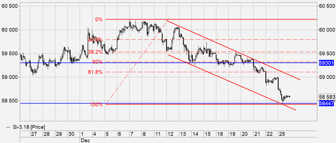 Продажа: при касании 58.50. Стоп: 58.70. Цель: 55.00.