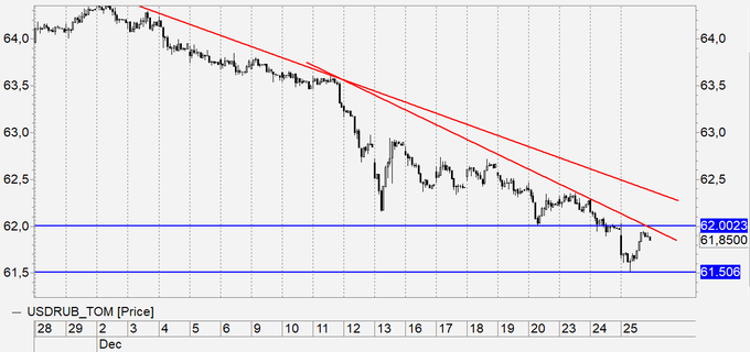 Рубль: растущая нефть греет рубль, и он продолжает расширять свои владения. Обращают на себя внимание итоги социологических опросов в Европе и США. Там народ высказывается от трети до половины населения за нормальную работу с Россией. Это также является поддержкой для национальной валюты. Так как для экономического роста России не нужно помогать. Надо просто оставить страну в покое. Отметим, что в случае прохода ниже 60.00, рубль может продолжить укрепляться вплоть до 55.00.