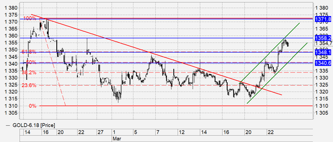Золото: такое ощущение, что золото начинает разгоняться. О продажах пока забываем. Покупки можно осуществлять на откатах. Если сегодня рынок даст возможность купить от 1345 – сделайте это.