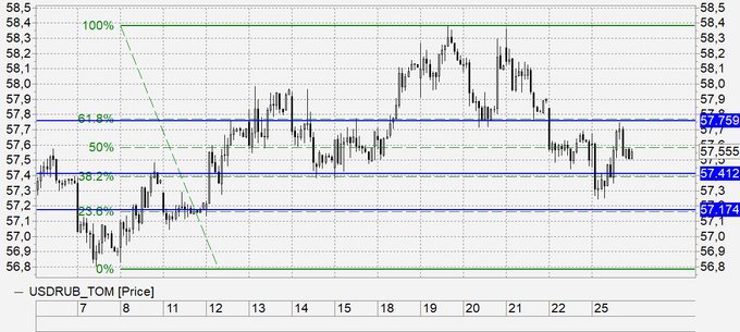 Покупка: рынок тонкий. В случае роста выше 57.60. Стоп: 57.44. Цель: 62.00.