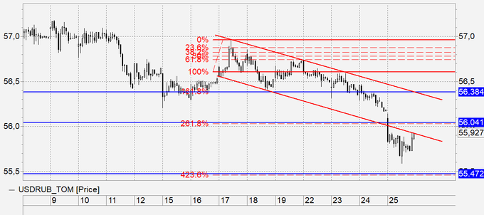 Рубль: минимум вчерашнего дня на ТОМ 55.585. После чего началась покупка практически параллельно с ослаблением нефти. Основной вопрос повестки – события следующей недели и американские козни. Нефть вряд ли пойдет выше 71.50, рубль вряд ли станет сильнее 55.555. Начинать ли покупать доллары. Нет. Ждем взятия 56.50 потом начинаем думать. Если санкции в отношении РФ будут мягкими, рубль может с такой нефтью легко укрепиться до 50.00.