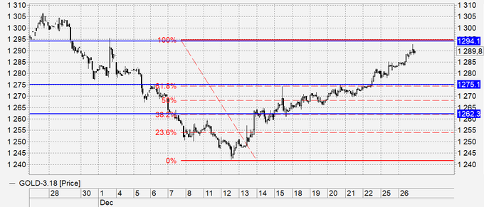 Золото: взяли мы ход к 1294, на самом деле максимум был на 1293, но этого вполне достаточно. Сегодня, не исключено, что мы попытаемся прорвать 1294, но шансов на успех очень мало. Ждем откат к 1275 в последние три дня текущего года. Если же рывок вверх, куда-то к 1350 состоится, то это станет новогодним сюрпризом.