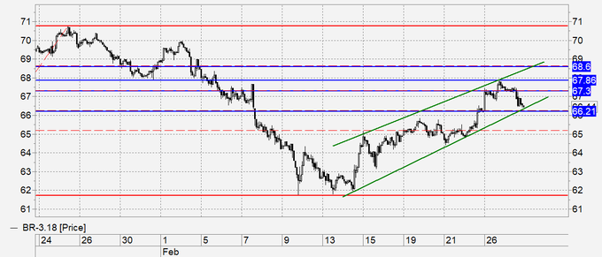 Нефть: на фоне данных от API о коммерческих запасах нефти в США, которые показывают рост почти на 1 миллион баррелей за неделю, цены не стали брать 68.60 и откатили, вновь поставив под вопрос светлое будущее энергоносителей. Есть угроза возобновления падения. Если сегодня данные от EIA также покажут рост запасов, а главное, что будет показан рост добычи в США, то рынок сядет на 60.00, для начала.