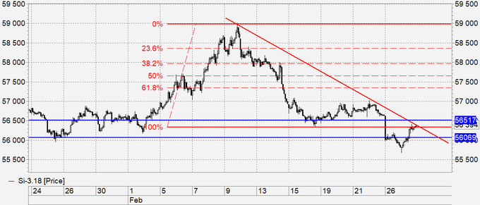 Наиболее вероятно: пока ниже 56.50 — падение.