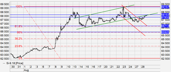 Покупка: придется брать в случае роста выше 68300. Стоп: 68100. Цель: 80000.