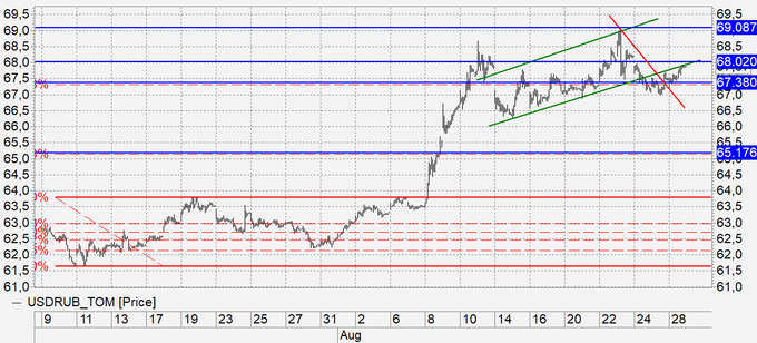 Покупка: после роста выше 68.10. Стоп: 67.90. Цель: 80.00.