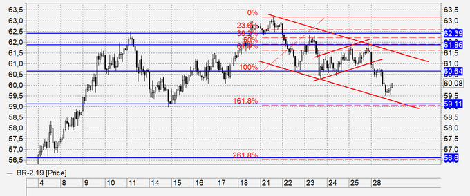Продажа: нет. Кто в позиции, перенесите стоп на 61.38. Изменим цель на: 56.70.