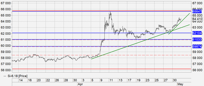 Покупка: нет. Кто в позиции, перенесите стоп на 62.70. Цель: 65.00.