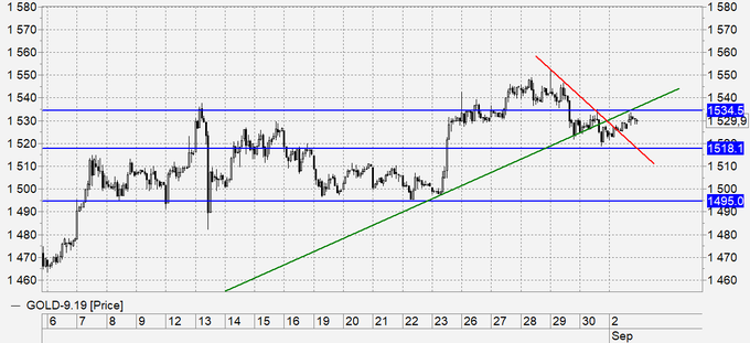 Золото: на рынке равновесие. Понедельник был пассивным из-за праздника в Америке. Если ориентироваться по евро, то сегодня мы вправе ожидать продолжение укрепления доллара. У рынка нет причин сейчас закладывать в цены смягчение денежно-кредитной политики в США. При отсутствии паники на американских биржах, золоту будет непросто вырасти в цене. Продаем от 1535.