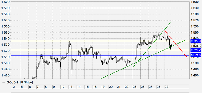 Золото: случилось то, чего мы хотели два дня назад. Рынок упал к 1520, теперь можно пробовать покупать вплоть до 1510, при условии, что будут появляться сигналы разворота вверх на малых временных интервалах. Если рынок уйдет ниже 1510, то это будет означать, что спекулянты начали ставить на рост ставок в США.