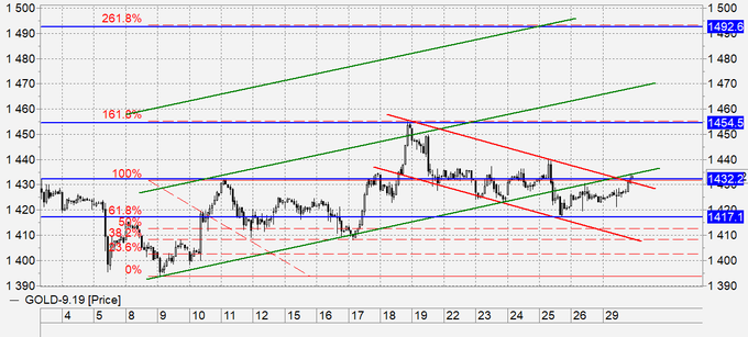 Золото: попытки собрать контракты на 1420 увенчались успехом и цены превысили 1432. Ситуация остается шаткой, но игнорировать очередной подъем выше 1430 было бы неправильно. Нам предлагают купить, и мы купим, но только после роста выше 1436. Ставить на ослабление доллара против золота, на фоне ожидания снижения ставки ФРС США, разумно.