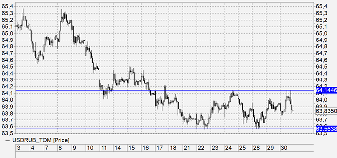 Рубль: рубль отреагировал на снижение ставки в США символическим укреплением. Основной страх – это цены на нефть. Те, кто рассчитывают на то, что экономика США будет увеличивать темпы роста, а значит и спрос на нефть, пока находятся в явном меньшинстве. Сегодня и завтра – важные дни. Если мы так и останемся над 63.50, а это произойдет при отсутствии роста цен на нефть, то будем рисовать ход к 70.00. Проблемы в экономике РФ никуда не делись, и в один «прекрасный» день мы это увидим через призму биржевых котировок.
