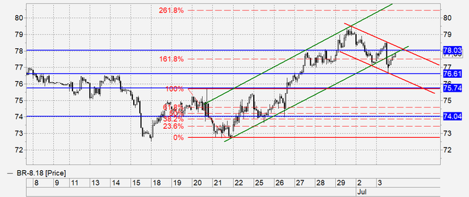 Покупка: после роста выше 78.10. Стоп: 77.80. Цель: 80.00.