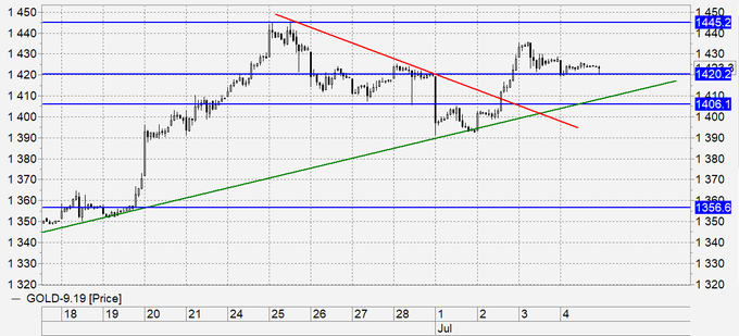 Золото: стоим, празднуем американский День независимости. Идея убрать НДС с продажи физических слитков в России весьма интересна. То есть власти должны согласиться с тем, что народ будет богатеть. Обладание бумажками и электронными записями по сравнению с обладанием золотом, особенно на долгосрочную перспективу, это ничто. Золото, оно как недвижимость, только меньше, не рассыпается и обслуживания не требует, если его хранить дома под подушкой, или в огороде закопать. Как только американская экономика чихнет в первый раз, пока растут 121 месяц подряд, стоимость золота вырастет. Это неизбежно.