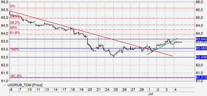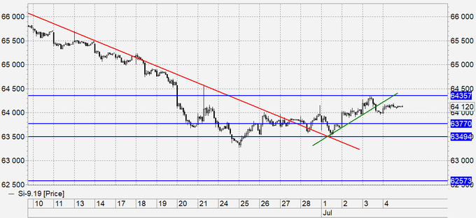 Рубль: на фоне падения PMI России ниже 50.00 (то есть началось замедление производства), Набиуллина начала публично рассуждать о возможности снижения ставки 26 июля, чего на самом деле в стандартном расписании ЦБ на этот год не планировалось. Для экономики ход своевременный, но вот для рубля… Посмотрим, как отреагирует на эти заявления рынок сегодня. Укрепление курса на фоне падения ставок весьма редкое явление. Поэтому, рост к 65.00 в данной ситуации возможен. Есть одно, но. Если инфляция продолжит стремиться к нулю, то и ставка в 6.0%, а не текущие 7.5%, может восприниматься как завышенная. Что оставляет возможность для сползания к 60.00.