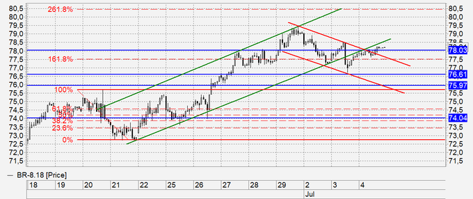 Нефть: сегодня, после Дня Независимости в США, будут опубликованы данные по запасам от EIA. Рынок уже заложил в стоимости среднее (в пределах 5 млн. баррелей) падение запасов, поэтому, уменьшение данного показателя уже не будет приниматься во внимание. А вот очередной призыв Трампа к ОПЕК «снизить цены» рынком услышан и цены едва закрепившись выше 78.10, ночью упали на 80 центов. Теперь самое интересное, кто победит, Трамп или спекулянты, которые явно вынашивали идеи затолкать рынок к 90.00. А если бы таких идей не было, мы бы давно упали. Сегодня ждем ослабления рынка и хода к 76.00, так как Америку по влиянию никто на данный момент превзойти не может.