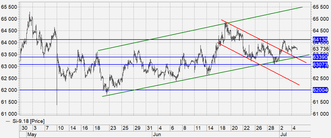 Покупка: с осторожностью после роста выше 64200. Стоп: 63900. Цель: 70000.