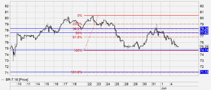 Brent (BR-06.18 код московской биржи, исполнение 02.07.2018)