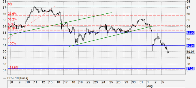 Нефть: рынок продолжает ползти вниз. Прошли 60.90, теперь дорога к 57.30 открыта. Остается один вопрос: смогут ли сегодня данные по запасам в США от API поддержать рынок, или технические факторы, плюс падающие фондовые рынки, сделают свое дело. Тиражируемую новость о том, что Китай может как-то там повлиять на рынки со своими 2 млн. баррелей, которые он собрал на таможенном терминале, как здоровую идею не рассматриваем. Все намного, намного хуже может быть, чем это сейчас представляется.
