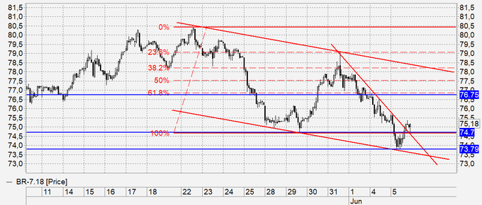Покупка: сейчас. Стоп: 73.96. Цель: 76.45.