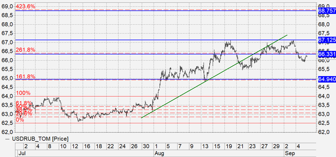 Рубль: в России дефляция. Последняя неделя августа закончилась с показателем минус 0.1%. Эти данные и стабильная нефть могут способствовать тому, что ЦБ РФ снизит ставку на 0.25% сегодня. Несмотря на снижение собственной стоимости российские деньги могут сегодня подорожать относительно доллара, так как ставка находится на высоком уровне относительно валют развитых стран. Снижение политической напряженности помогает рублю чувствовать себя комфортно.