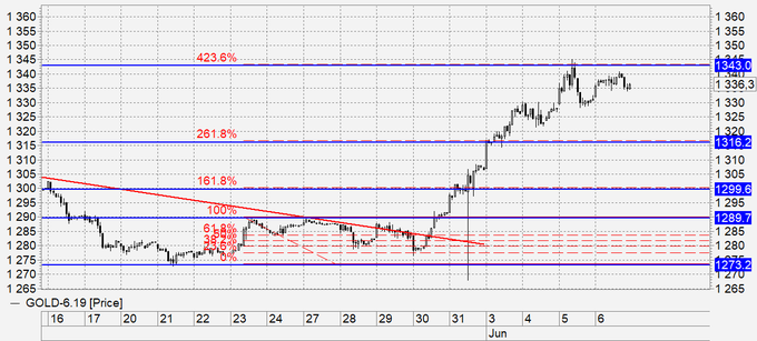 Золото: отошли мы к 1340. Это хороший район для продажи. Можно входить в шорт с целями на 1316. Рынок пока не верит в рост процентной ставки в США, что вернуло потерянный было оптимизм на фондовые рынки. Если подъем на рынке акций будет продолжаться, то поход золота к 1570 будет отложен до осени.