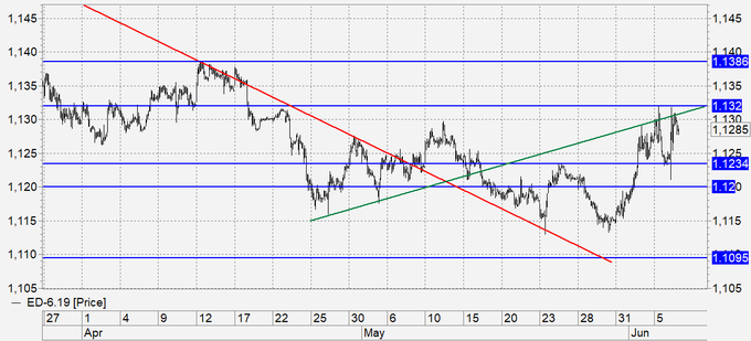 Евро: ЕЦБ незначительно улучшил прогноз по росту экономики с +1,1 до +1,25 ВВП на этот год, и снизил на 0,1% прогноз по 2020-му году на фоне торговых войн. Сам факт того, что прогноз на этот год не ухудшили, вызвал определенный прилив положительных эмоций. Трейдеры поспешили подарить евро едва ли не фигуру, но на этом дело и закончилось. Фокус смещается на 19-е июня. Заседание ФРС. Текущие комментарии таковы, что Банк будет смотреть на состояние экономики и в случае необходимости уменьшит стоимость денег. Это давит на доллар, в такой ситуации ход к 1.1400 просматривается.