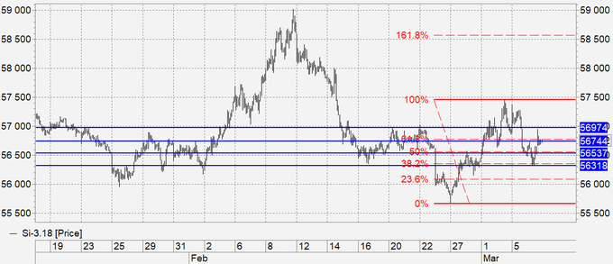 Покупка: после роста выше 56800. Стоп: 56240. Цель: 60000.