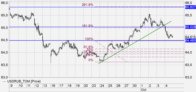 Покупка: можно агрессивно в случае развития дня вверх. В случае падения покупать на 64.36. Стоп: 64.10. Цель: 65.82.