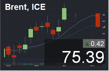Цена в долларах за баррель. Для пересчета в доллары за тонну нефти марки Brent, необходимо цену умножить на 7,59.