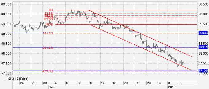 Продажа: нет. Кто в позиции, передвиньте стоп на 58160. Цель: 55500.