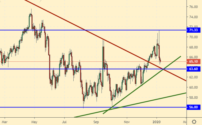 Сценарий роста: рассматриваем мартовский фьючерс, дата экспирации 31 января. От 63.60 можно покупать. Если мы не удержимся выше 63.00, будет ход к 60.00.