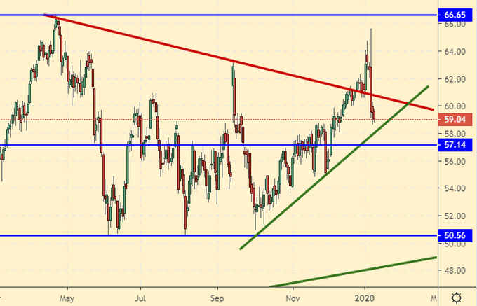 Покупка: сейчас и при падении к 60.00. Стоп: 59.30. Цель: 64.50.