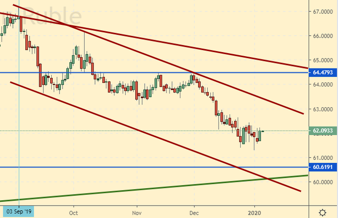 Сценарий падения: продавать теперь будем только после падения рынка ниже 60.00. Отметим, что пятничный рост не получит продолжения если Иран смиренно снесет убийство своего генерала. По факту Россия не сокращала добычу, хотя и подписывала бумаги ОПЕК+, этот факт уже признан. И это медвежий фактор.