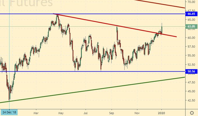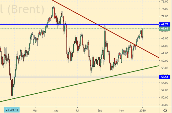 Нефть на события в Ираке отреагировала ростом, так как не ясно чем ответит Иран на убийство своего генерала, пусть и не на своей территории. К сожалению, проблемы на ближнем Востоке носят хронический характер и вряд ли что-то изменится в позитивную сторону в ближайшее время.