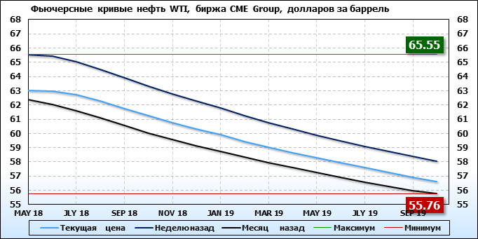 Фьючерсные кривые. Нефть. Биржи CME Group и ICE. Данные на 26.03.2018